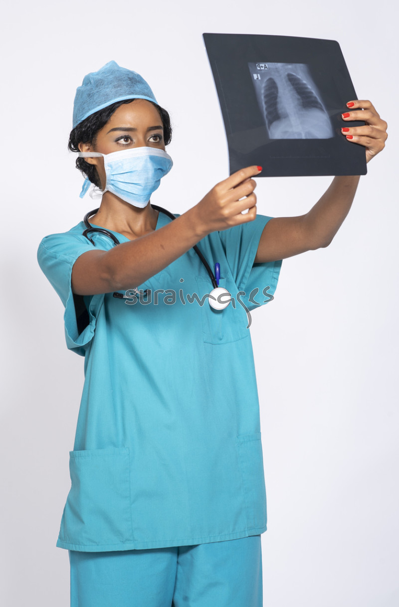 Title Female doctor looking at a patient x-ray