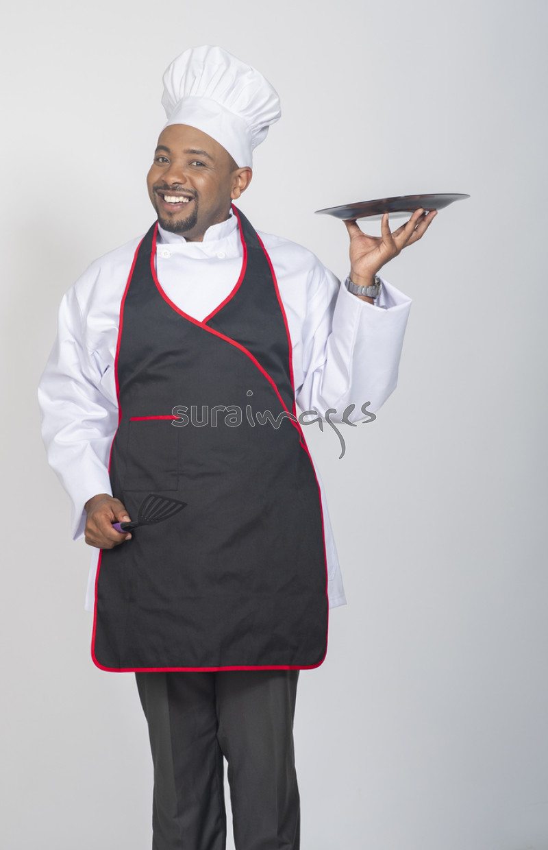 Title Joyful male chef holding a plate